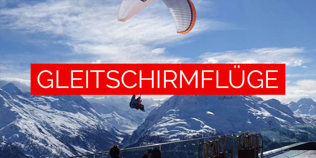 Wandern kann jeder, aber die Landschaft aus Vogelsicht geniessen können nur wenige. Um das Engadin von oben betrachten zu können, gibt es Gleitschirm-Passagierflüge: Überlassen Sie dem Experten die Kontrolle und konzentrieren Sie sich ganz aufs Geniessen von Natur & Nervenkitzel. Die Voraussetzungen für den Passagier sind eine normale körperliche Verfassung und ein Körpergewicht ab 30 kg.